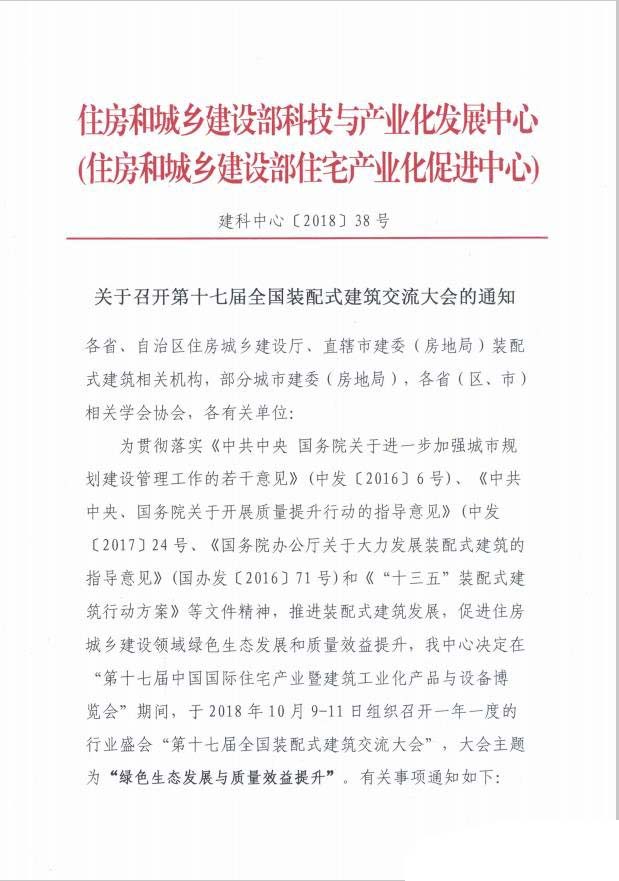 关于召开第十七届全国装配式建筑交流大会的通